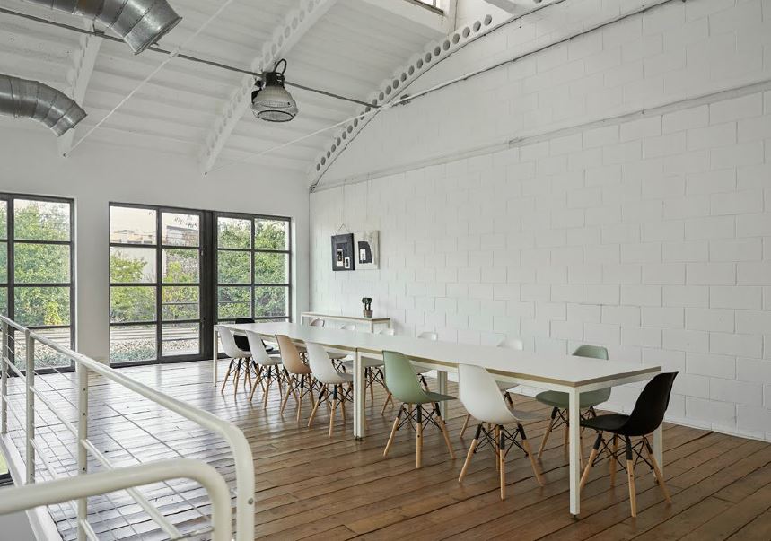 The light that filters through the large windows, the outdoor garden, the exposed bricks, the iron windows and wooden inserts contribute to making the space as welcoming as it is contemporary.