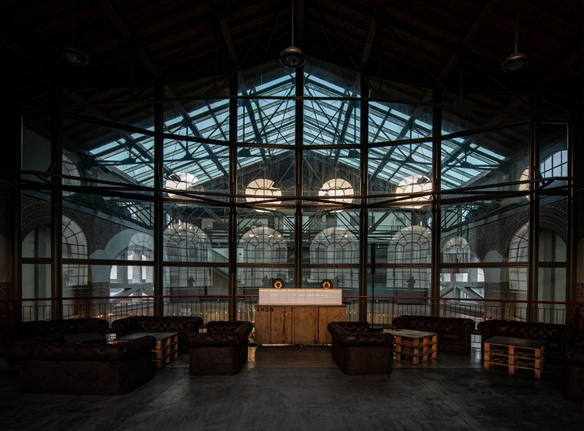 With a post-industrial flavor, this splendid venue rises in the heart of a former factory.