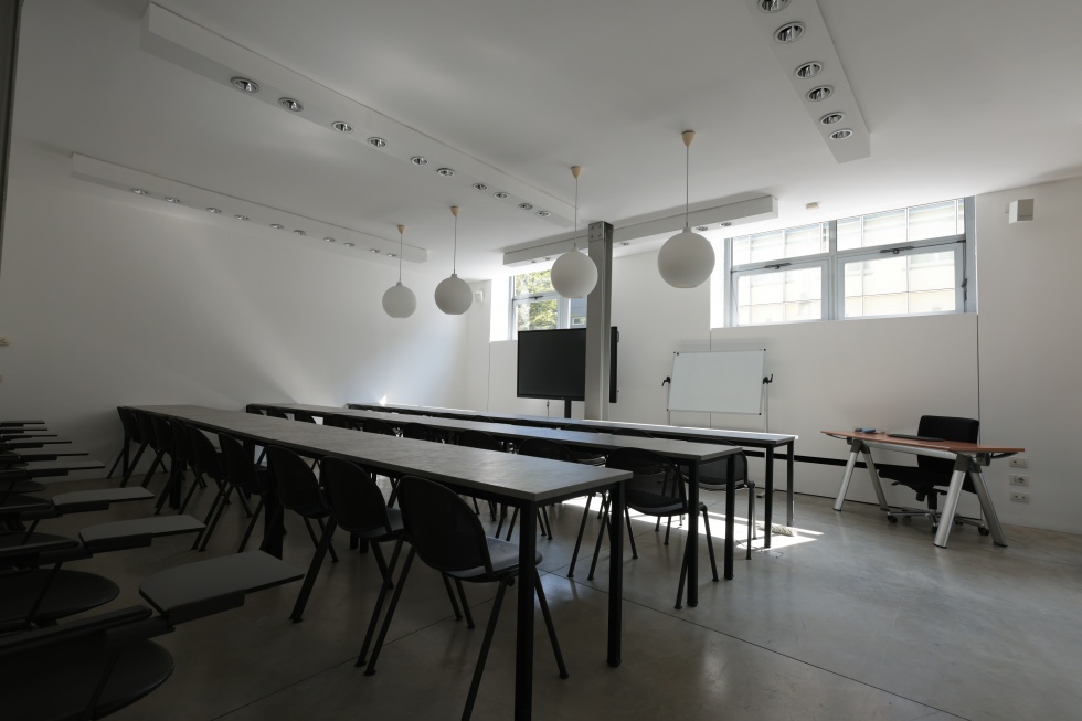 The main feature of the building is a spacious open area designed to adapt easily to business meetings, product launches, conferences, exhibitions and cultural projects. The venue also includes four classrooms equipped with up-to-date technology and two meeting rooms suitable for workshops and private sessions.