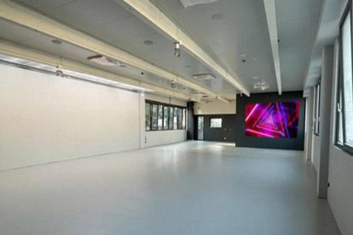 Three LED walls support dynamic visual setups, while large windows bring generous natural light into the space. A dedicated bar area, a professional audio and lighting system, and fully equipped facilities — including accessible toilets — complete the offering. The entire location is powered by photovoltaic panels, helping to reduce environmental impact. Located in Cusano Milanino, it benefits from easy access from Milan and the main road network, making it suitable for conference halls and press days.