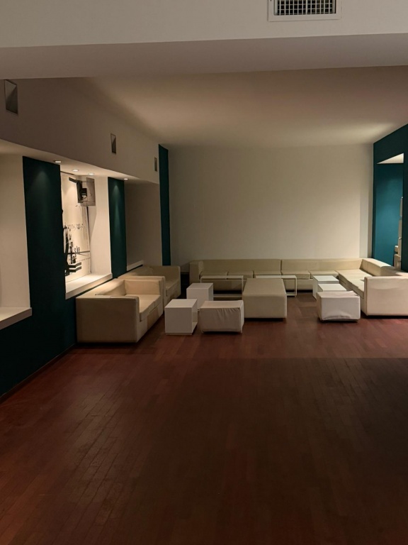 On the ground floor you will find the actual event venue, a 150sqm space, entirely independent, with a bar counter, DJ booth, allowed system, professional lighting, a projector and wi-fi, as well as plenty of tables and chairs. This is the ideal location for your corporate and private events.
