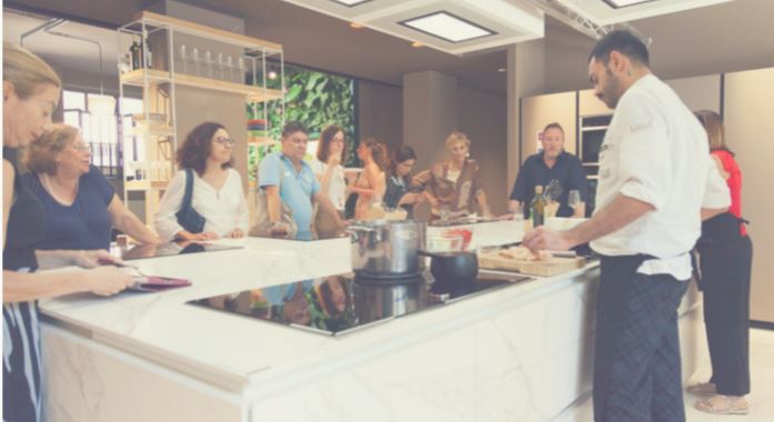 La messa a disposizone di cucine permette l'organizzazione di team cooking, show cooking e corsi di cucina. Ma risulta essere perfetta anche per press-day, meeting e aperitivi o cene aziendali.