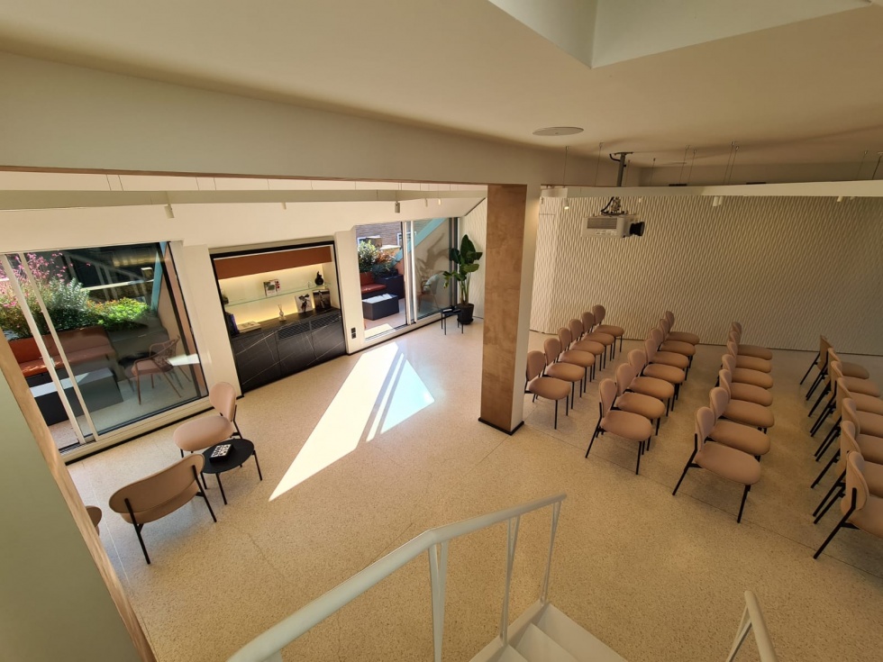 Il loft al sesto piano è caratterizzato da ampie vetrate che si aprono su numerosi terrazzi allestiti con elementi di design. Il piano è interamente arredato ed è fornito di impianto audio-video all'avanguardia che rende la location adatta ad ospitare meeting, riunioni di lavoro e lanci di prodotti. Un’isola scenografica, una cucina professionale, una cantina vini e l’angolo caffetteria diventano il palcoscenico ideale per i tuoi eventi.