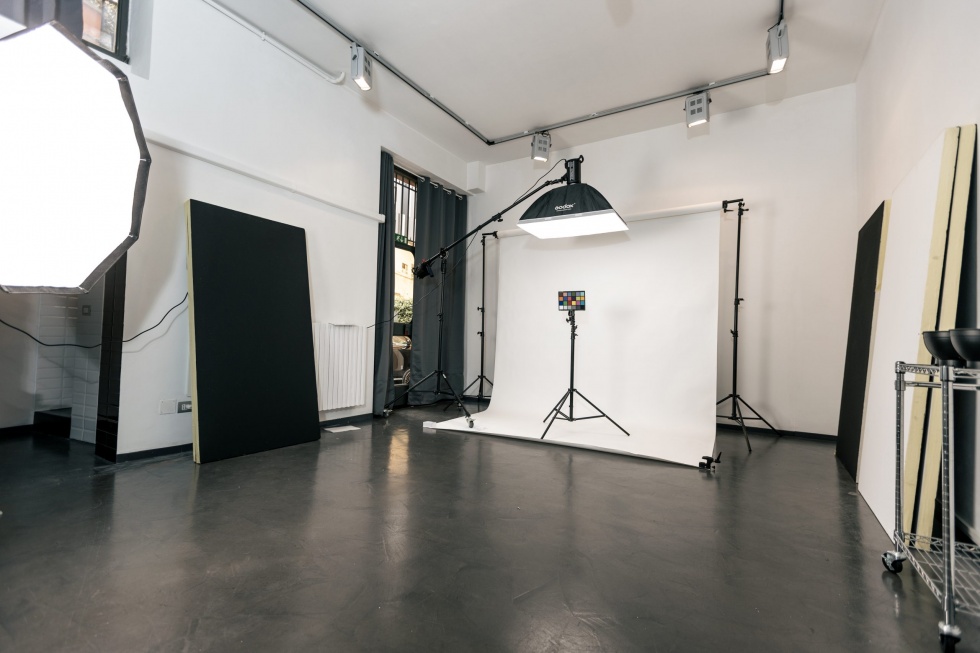 2 piani da 130 mq ciascuno: piano terra luminoso utilizzato per gli shooting e piano seminterrato utilizzato per gli incontri di lavoro e momenti di convivialità