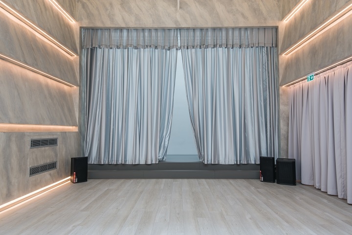 Nel dettaglio lo spazio si sviluppa su due livelli interni e un piccolo sfogo esterno utilizzato per accoglienza e momenti di networking. Al piano terra, lo spazio consta del guardaroba, della sala principale che può ospitare fino a 99 persone a platea ed è dotata di un funzionale palco residente di 15 mq, dei camerini per gli artisti e di una comoda ed elegante cucina movibile.
