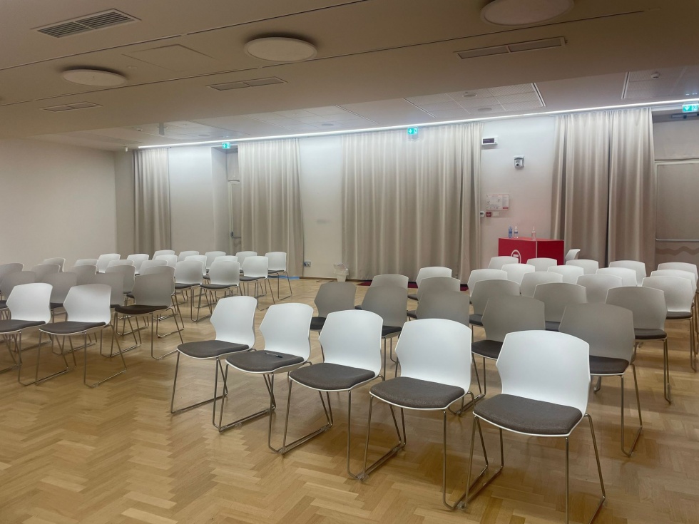La sala ha una capienza di oltre 100 persone ed è dotata di service residente che può essere utilizzato dal cliente per i propri eventi.