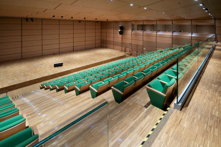 Superate le porte di accesso e la zona reception, uno scalone conduce ad un ampio foyer, perfetto per servizi di accrediti, guardaroba, food&beverage. Adiacenti allo spazio, ci sono altre tre sale minori utilizzabili e un meraviglioso cortile che si può sfruttare nelle giornate di bel tempo. Direttamente dal foyer, si accede poi al vero cuore pulsante dell'edificio: l'Auditorium.
