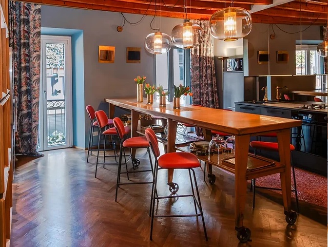 Caratterizzata da una splendida cucina a vista, questa location è una scelta eccezionale per cene aziendali esclusive, cocktail party o aperitivi aziendali ed eventi eleganti con i tuoi clienti e business partner.