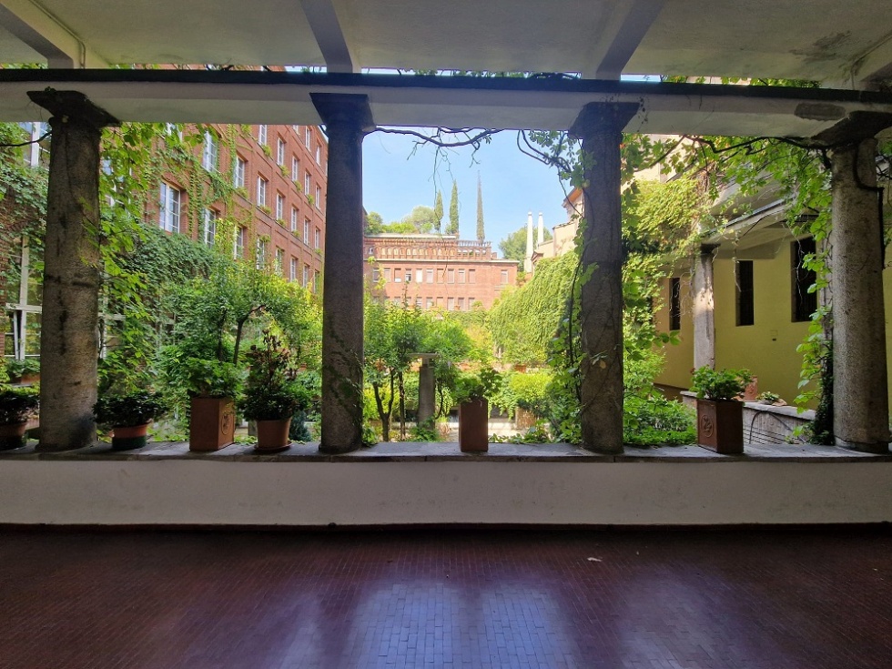 L'ampio portico si apre sui due lati, offrendo una cornice perfette per organizzare mostre ed esposizioni, per allestire servizi fotografici, per ospitare catering ed eventi aziendali indimenticabili durante il FuoriSalone. Qui i tuoi eventi business potranno svolgersi in un piccolo paradiso verde, dall'atmosfera raccolta e piacevole, nel pieno centro di Milano.